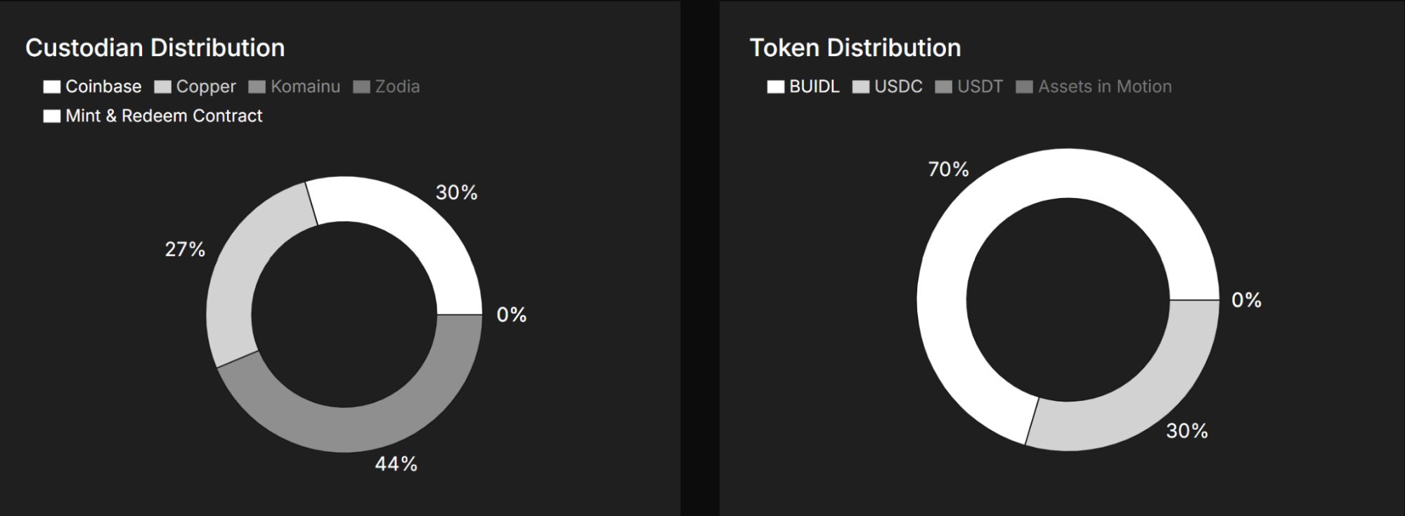 从托管人角度来看,USDtb 分布在主要的机构级平台上。根据最新的托管人分布,44% 的资产存放在 Komainu,27% 存放在 Copper,30% 管理在 Mint & Redeem 合约系统中。Coinbase 和 Zodia 当前在此快照中没有持有任何储备。